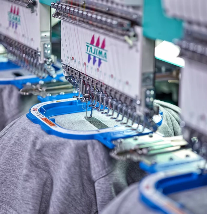 Unsere Mitarbeiter setzen mit umfangreicher Software jedes Motiv mit viel Liebe um und sorgen mit industriellen Stick-Maschinen für eine zügige und saubere Umsetzung Ihrer Bestellung.